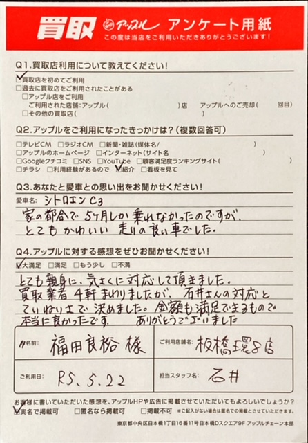 埼玉県川口市 福田 良裕様  車名:シトロエン C3