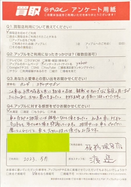 Q.愛車との思い出は? A.この車は子供の成長と共に部活の送迎、観戦やキャンプなど家族の思い出がたくさんあり、大切に乗ってきました。手放すときは本当に寂しかったです。