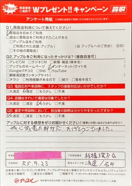 お車のご相談・ 査定だけでもOK! カンタン 入力 30秒 アップルがブランド買取始めました! お電話でも受付中! 受付時間10:00~19:00 0120-234-832 お車のご相談・ 査定だけでもOK! カンタン 入力 30秒 アップルがブランド買取始めました! お電話でも受付中! 受付時間10:00~19:00 0120-234-832 アップルがブランド買取始めました! お電話でも受付中! 受付時間10:00~19:00 0120-234-832 店舗情報 在庫車 スタッフ紹介 ブログ お客様の声 キャンペーン お得 無料査定 click お客様の声 ご記入日: 2023/09/23 東京都港区 K・N様 車名:シトロエン C3 Q.アップルの感想は? A.誠心誠意の御対応 ありがとうございました。 前へ 次へ お客様の声一覧を見る