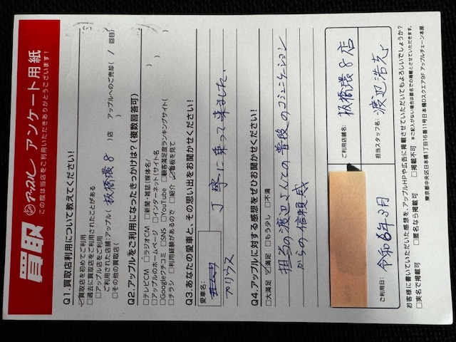お車のご相談・ 査定だけでもOK! カンタン 入力 30秒 アップルがブランド買取始めました! お電話でも受付中! 受付時間10:00~19:00 0120-234-832 お車のご相談・ 査定だけでもOK! カンタン 入力 30秒 アップルがブランド買取始めました! お電話でも受付中! 受付時間10:00~19:00 0120-234-832 アップルがブランド買取始めました! お電話でも受付中! 受付時間10:00~19:00 0120-234-832 店舗情報 在庫車 スタッフ紹介 ブログ お客様の声 キャンペーン お得 無料査定 click お客様の声 ご記入日: 2024/03/28 東京都板橋区 Y・O様 車名:トヨタ プリウス(2023年3月~のPHVを含む) お車:プリウス Sツーリング Q.愛車との思い出は? A.丁寧に乗ってきました。Q.アップルの感想は? A.満足 担当の渡邊さんとの普段のコミュニケーションからの信頼感。 前へ 次へ お客様の声一覧を見る