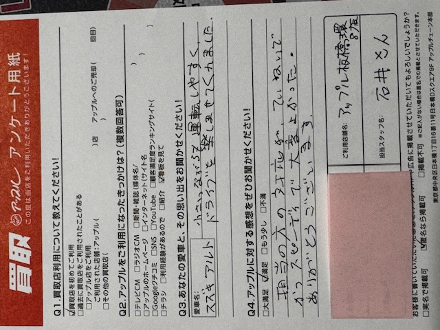 担当の方の対応が、丁寧でかつスピーディーで大変良かった。ありがとうございます!