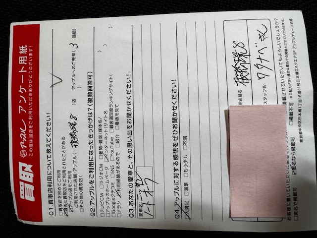 色々お話させて頂き、良い取引が出来ました。ありがとうございました。