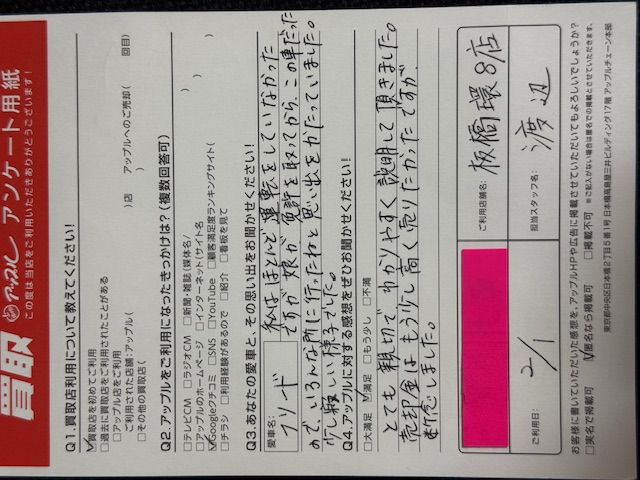 私はほとんど運転をしていなかっいたですが娘が免許をとってからこの車だったので、いろんな所に行ったねと思い出をかたっていました。少し寂しい様子でした。
