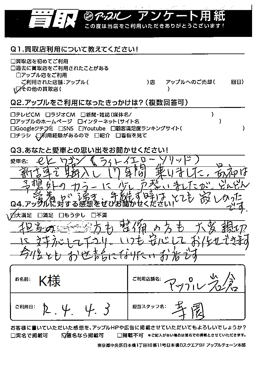 k様 車名:三菱 eKワゴン