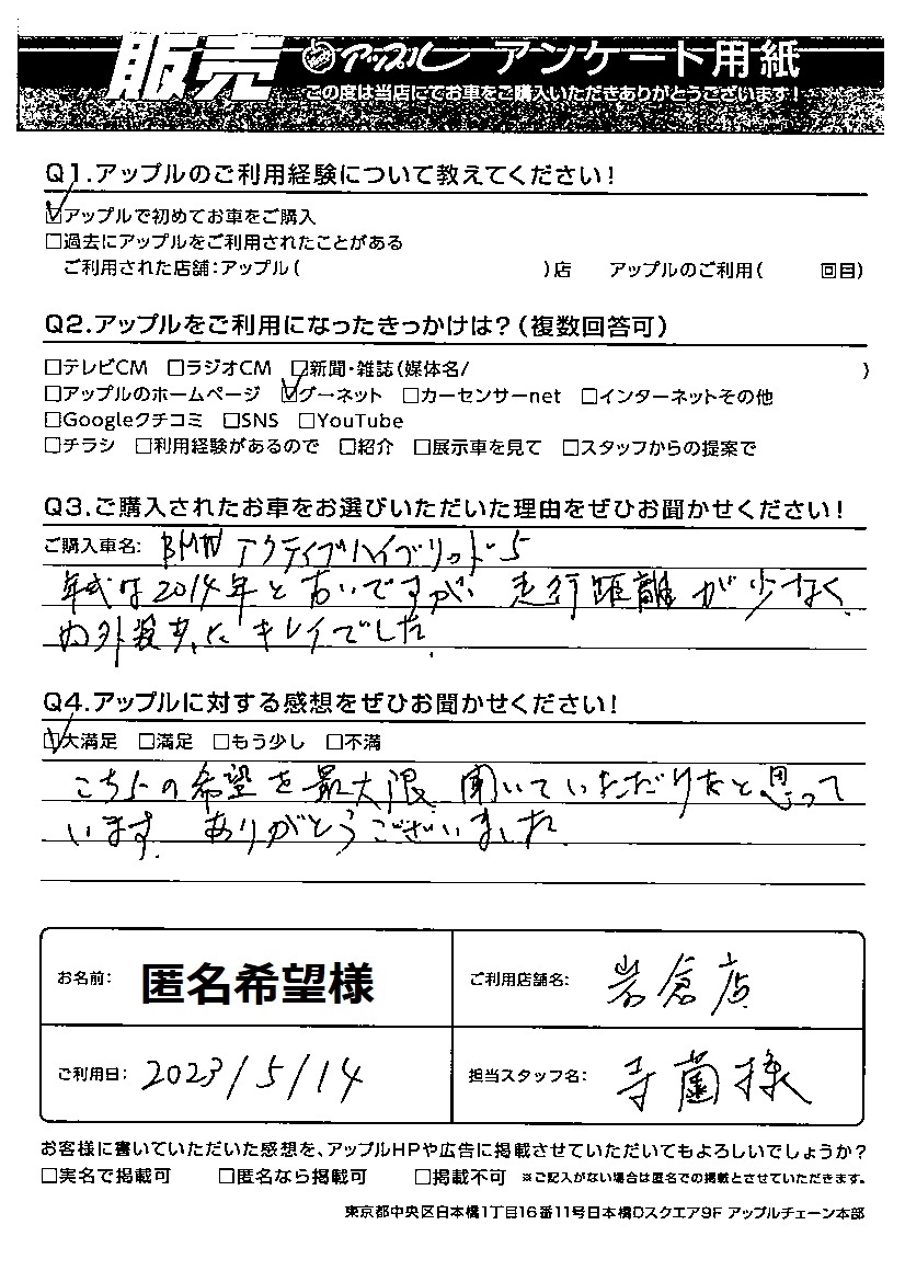 Qご購入されたお車をお選びいただいた理由をぜひお聞かせください!