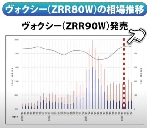 なんと、90ノア・VOXYの発売日には、過去2年で最高値を付けています