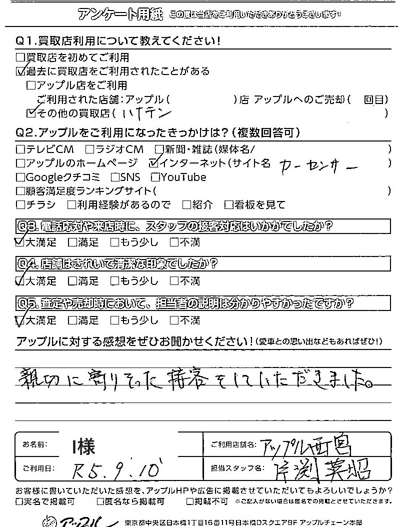 アップル西宮コーナン今津店をご利用いただいた、たくさんのお客様が満足していただいているのが結果として表れているので、