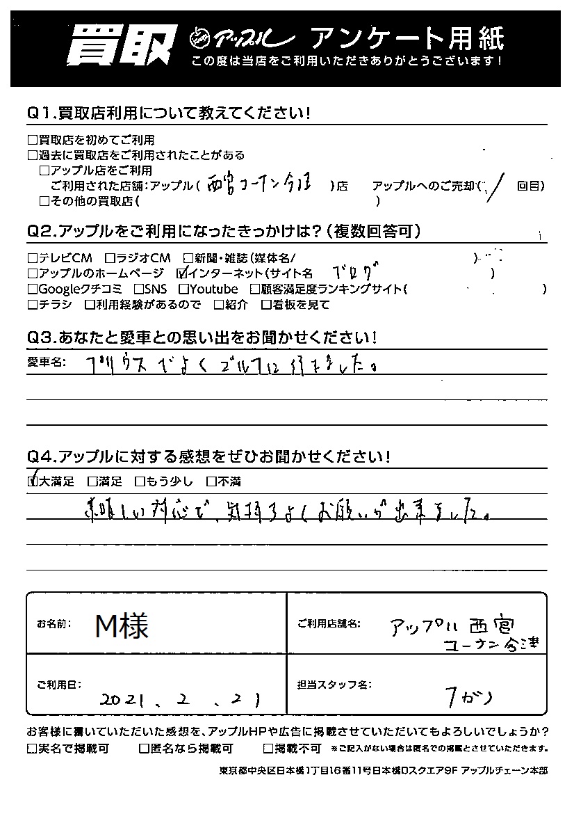 M様 車名:トヨタ プリウス(2023年3月~のPHVを含む)