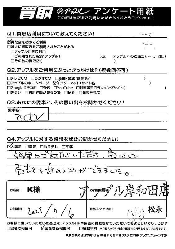 岸和田店をご利用されたお客様からいただいた