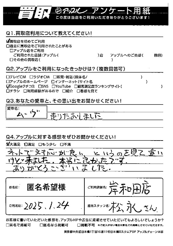 岸和田店をご利用されたお客様からいただいた