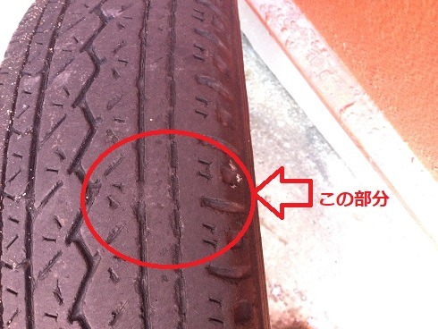 上記のようなタイヤがすり減ってスリップサインが出ている・・・