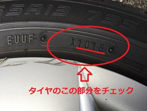 上記を参照にタイヤ側面に記載されている製造年をチェックしてみて下さい。