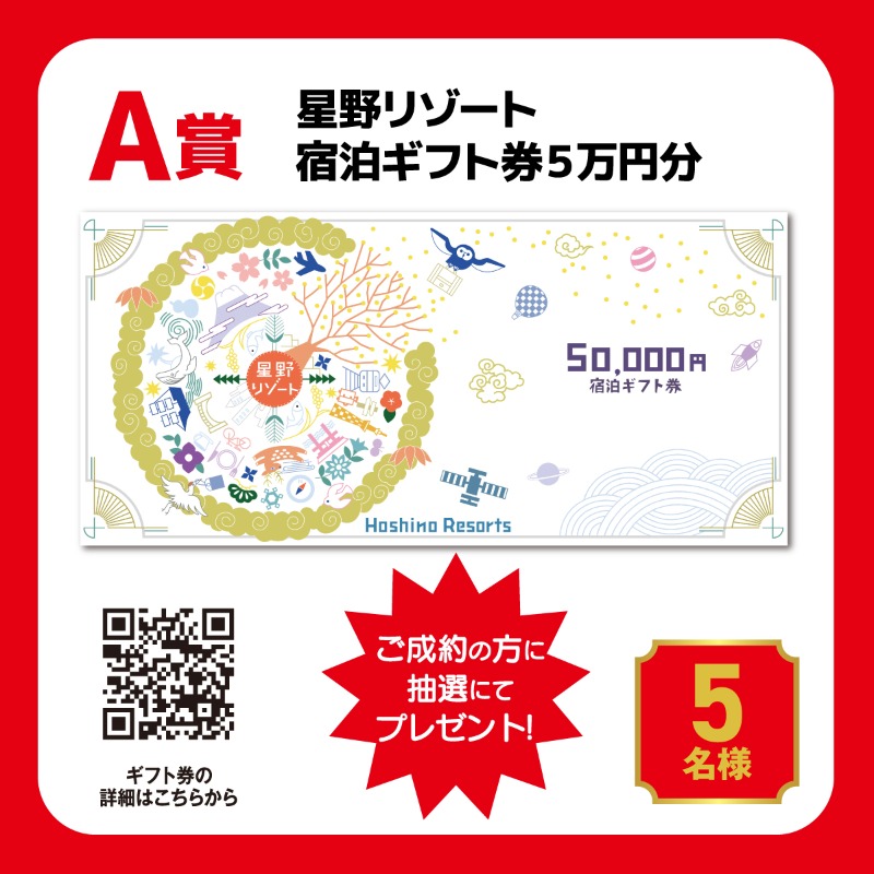 A賞:星野リゾート宿泊ギフト券5万円(5名様)