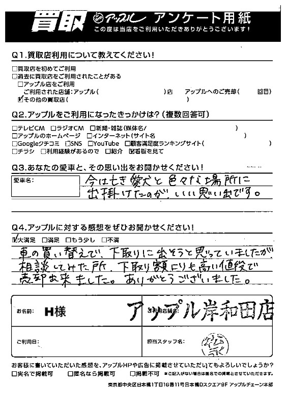 ちなみに、アップル岸和田店をご利用いただいたお客様からの声も