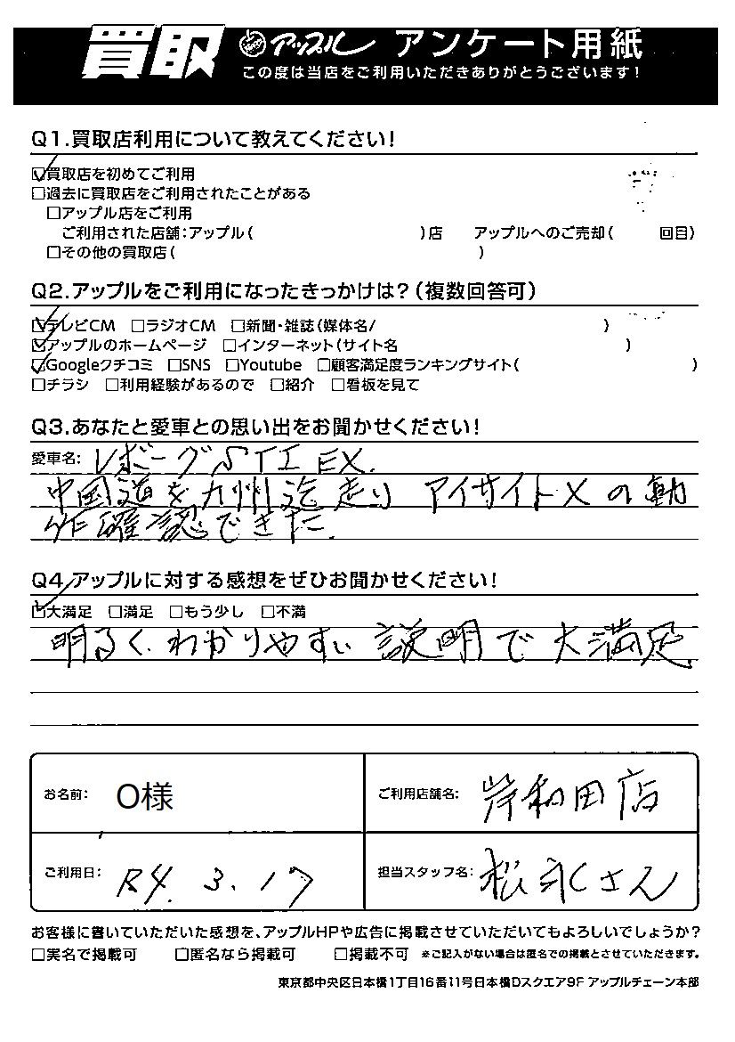 O様 車名:スバル レヴォーグ