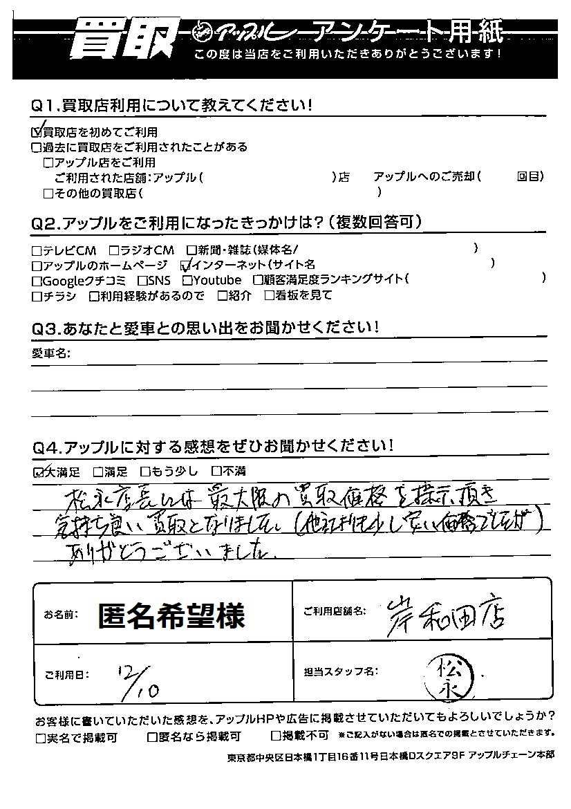気持ち良い買取となりました。(他社よりも少し安い価格でしたが)