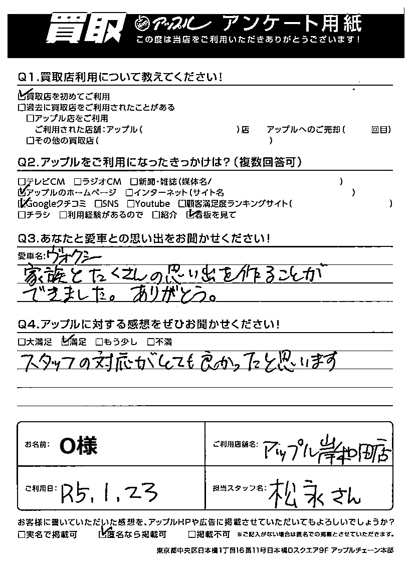ご利用日:2023年1月23日 担当:松永
