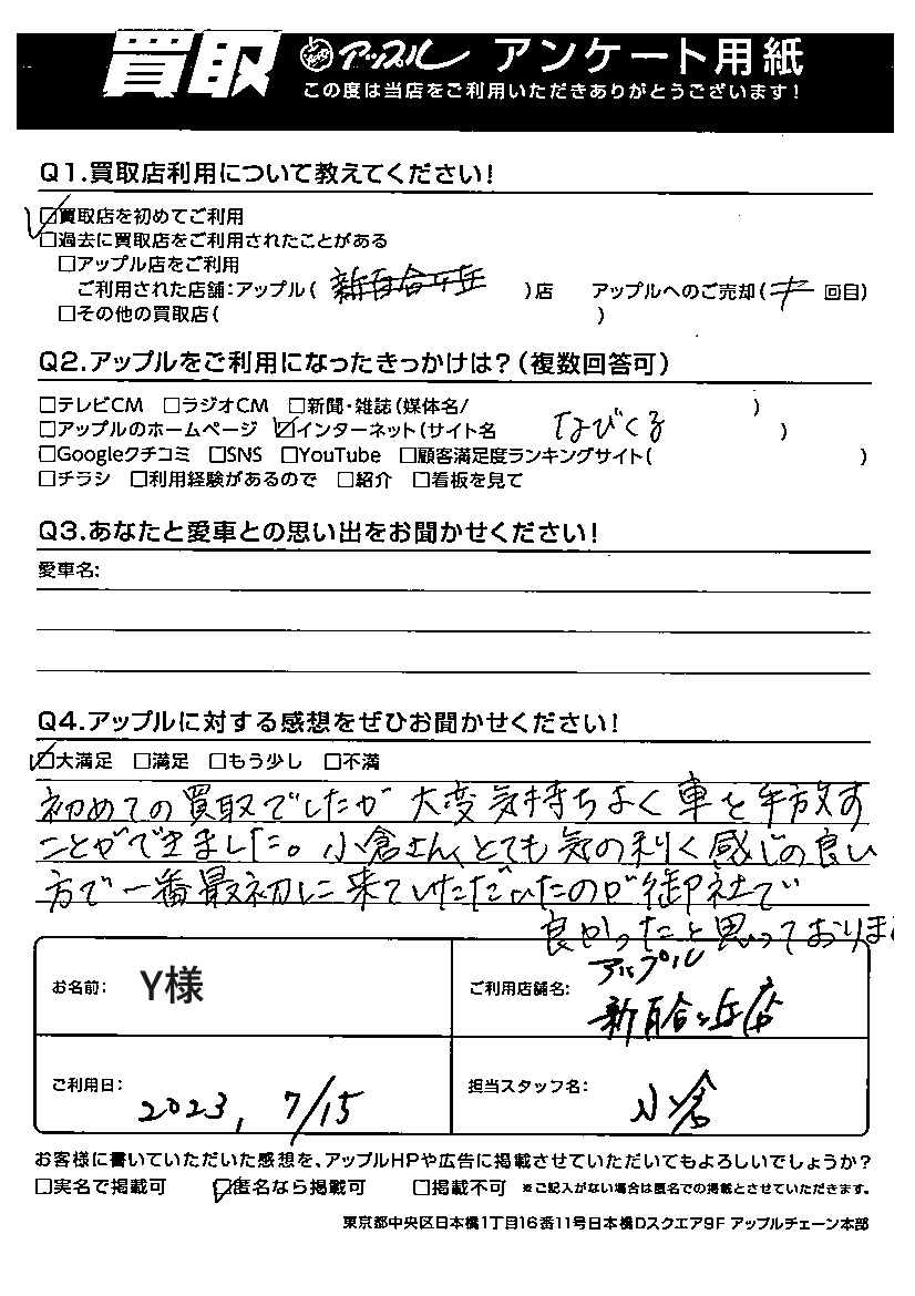 初めての買取でしたが、大変気持ちよく車を手放すことができま