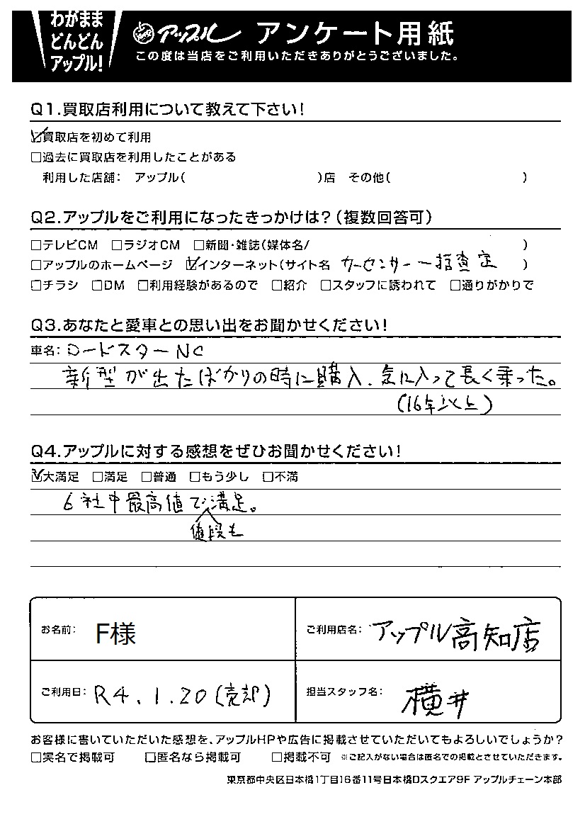 F様 車名:マツダ ロードスター