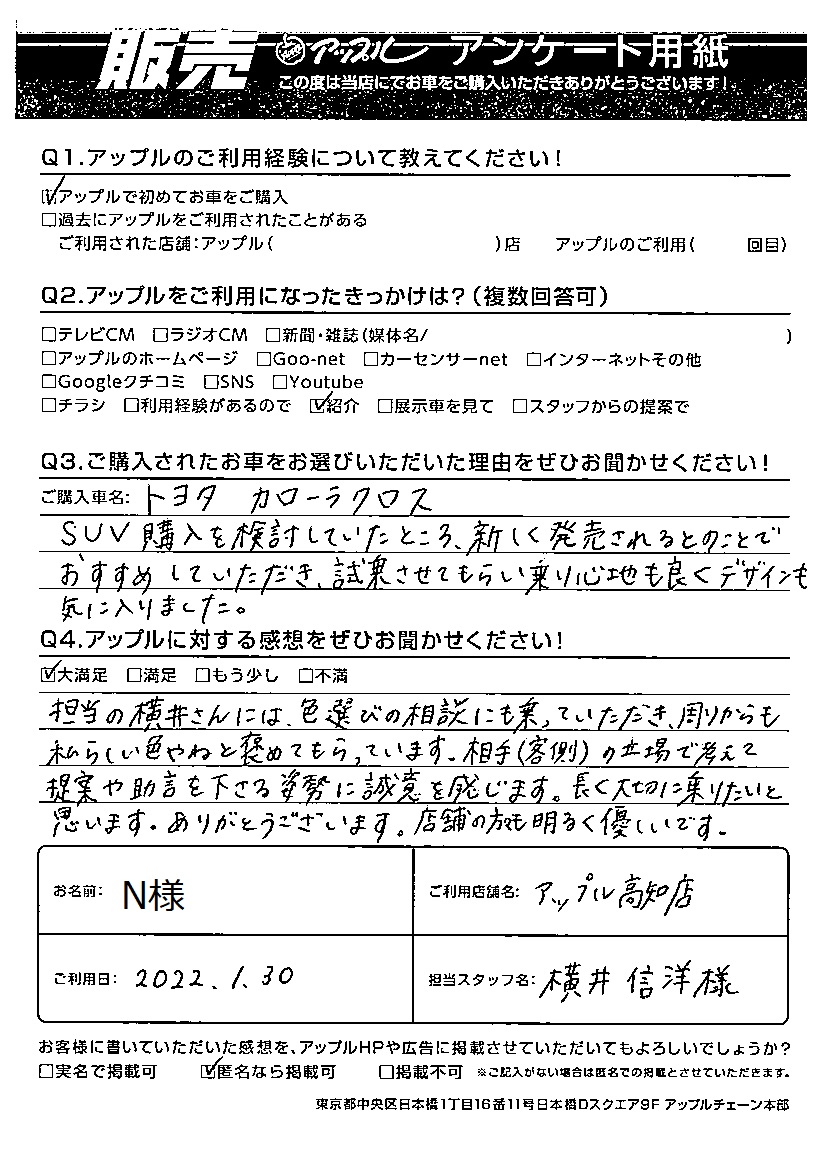提案や助言を下さる姿勢に誠意を感じます。長く大切に乗りたいと思います。