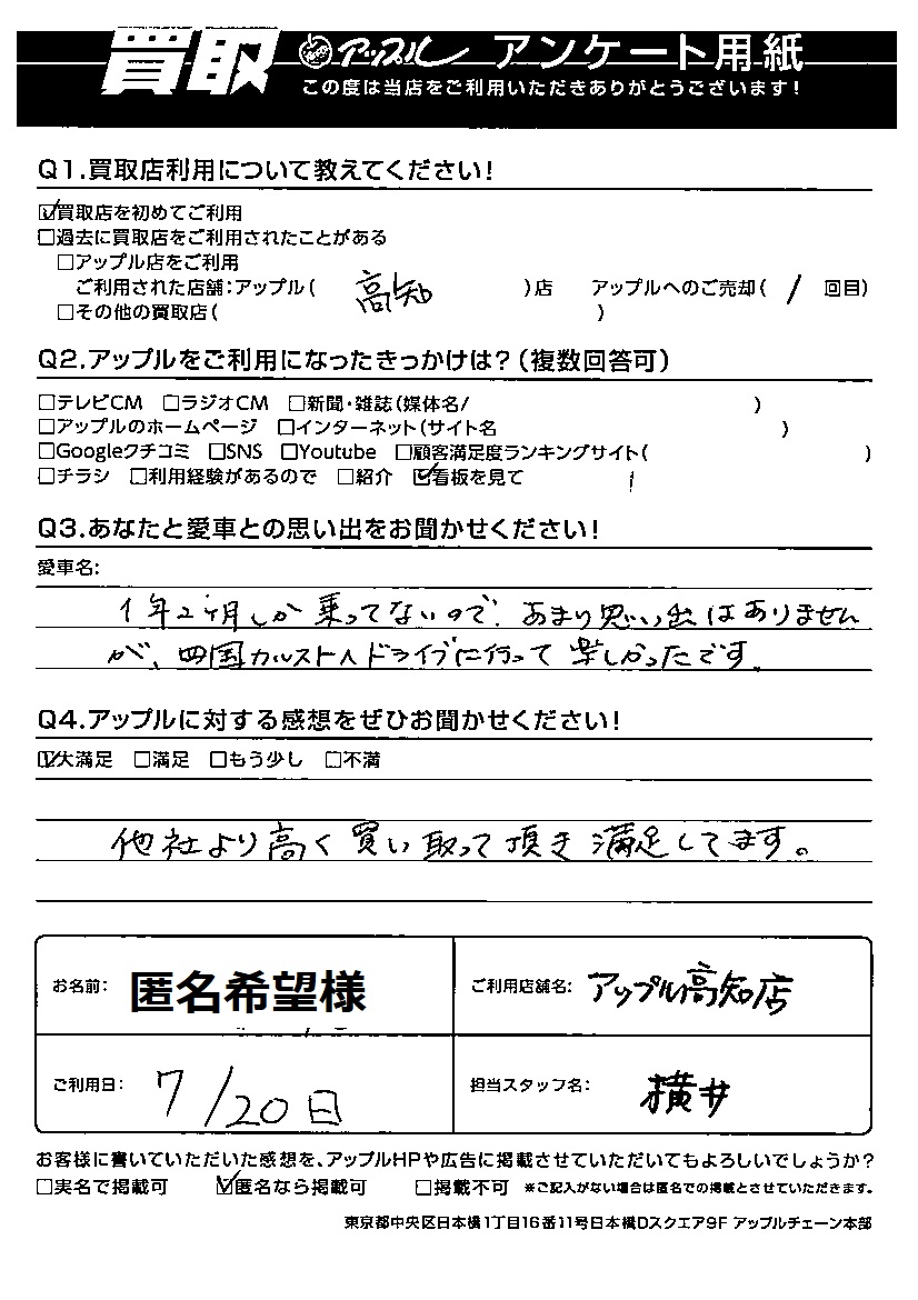 他社より高く買い取って頂き満足してます。