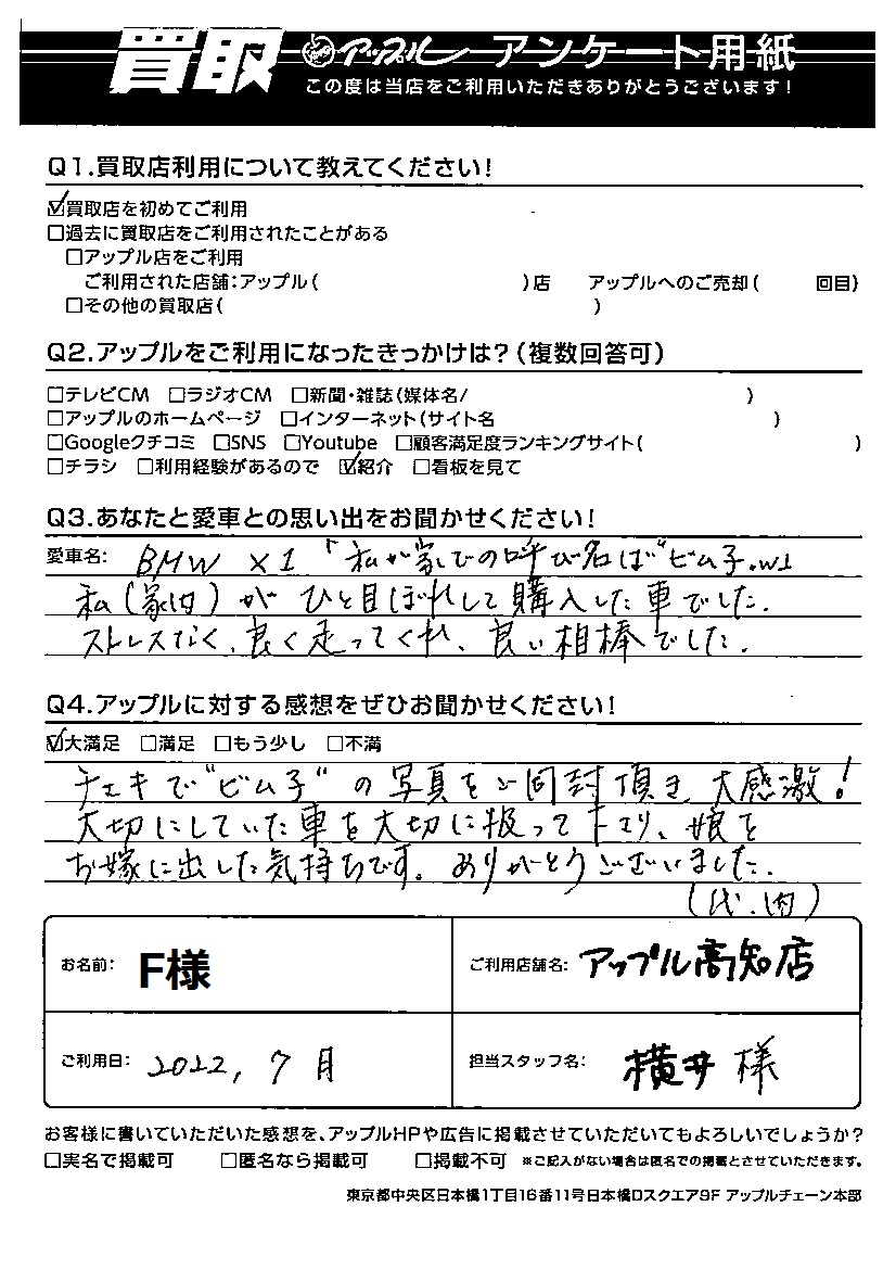 大切にしていた車を大切に扱って下さり、娘をお嫁に出した気持ちです。