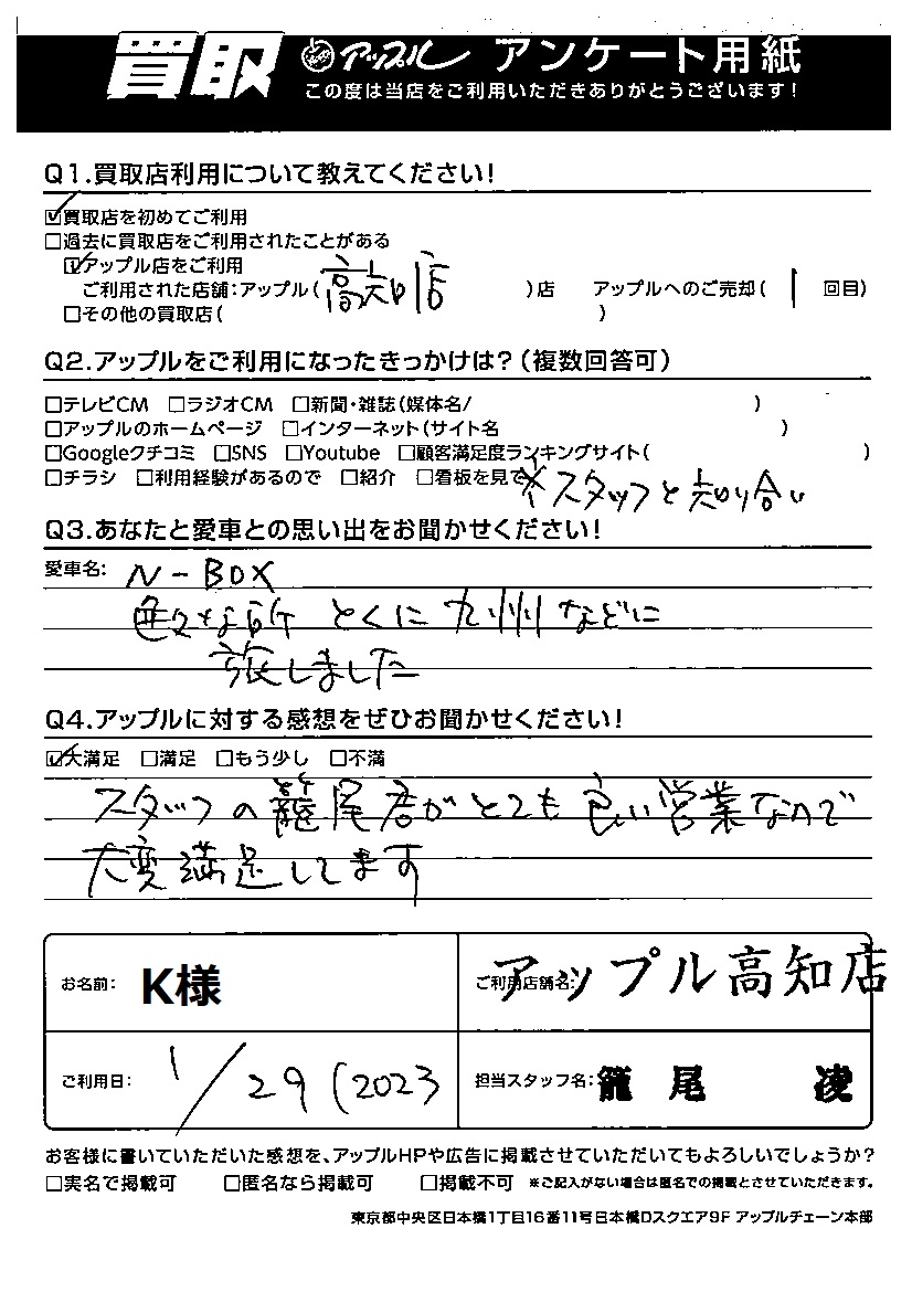 スタッフの籠尾君がとても良い営業なので大変満足してます。