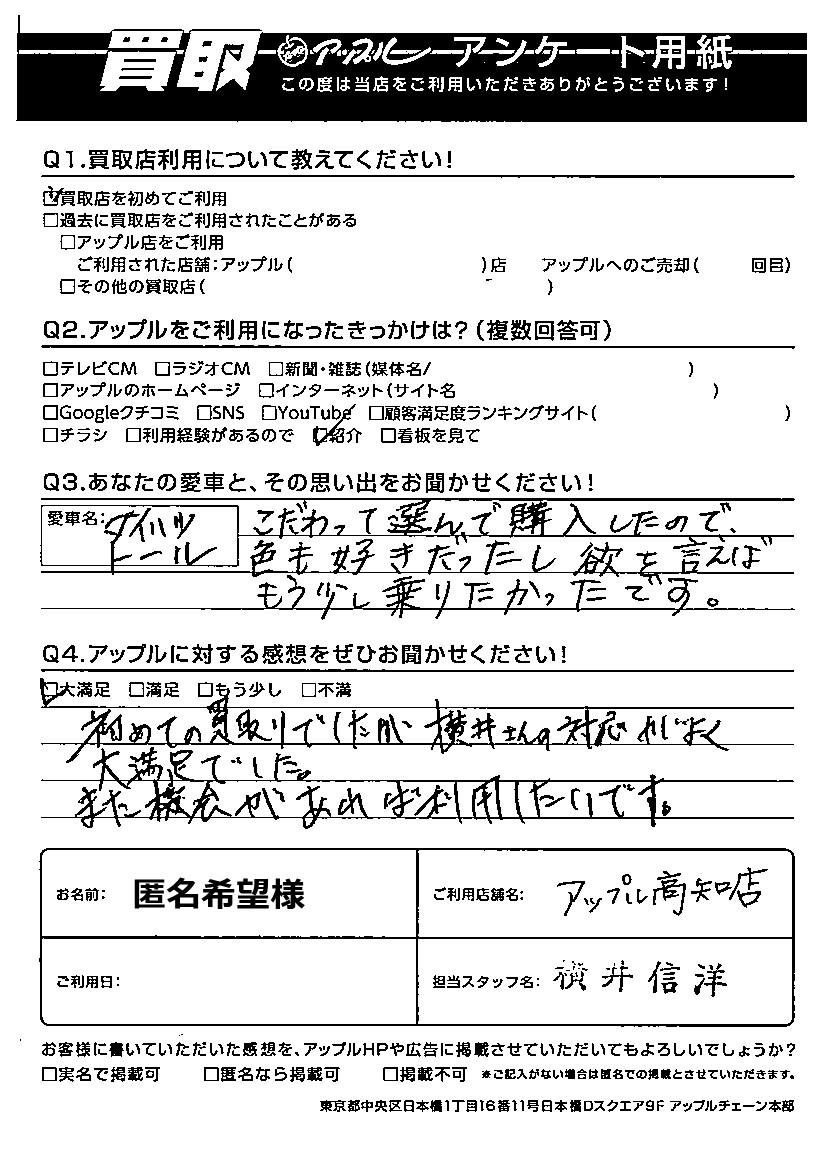 匿名希望様 車名:ダイハツ トール
