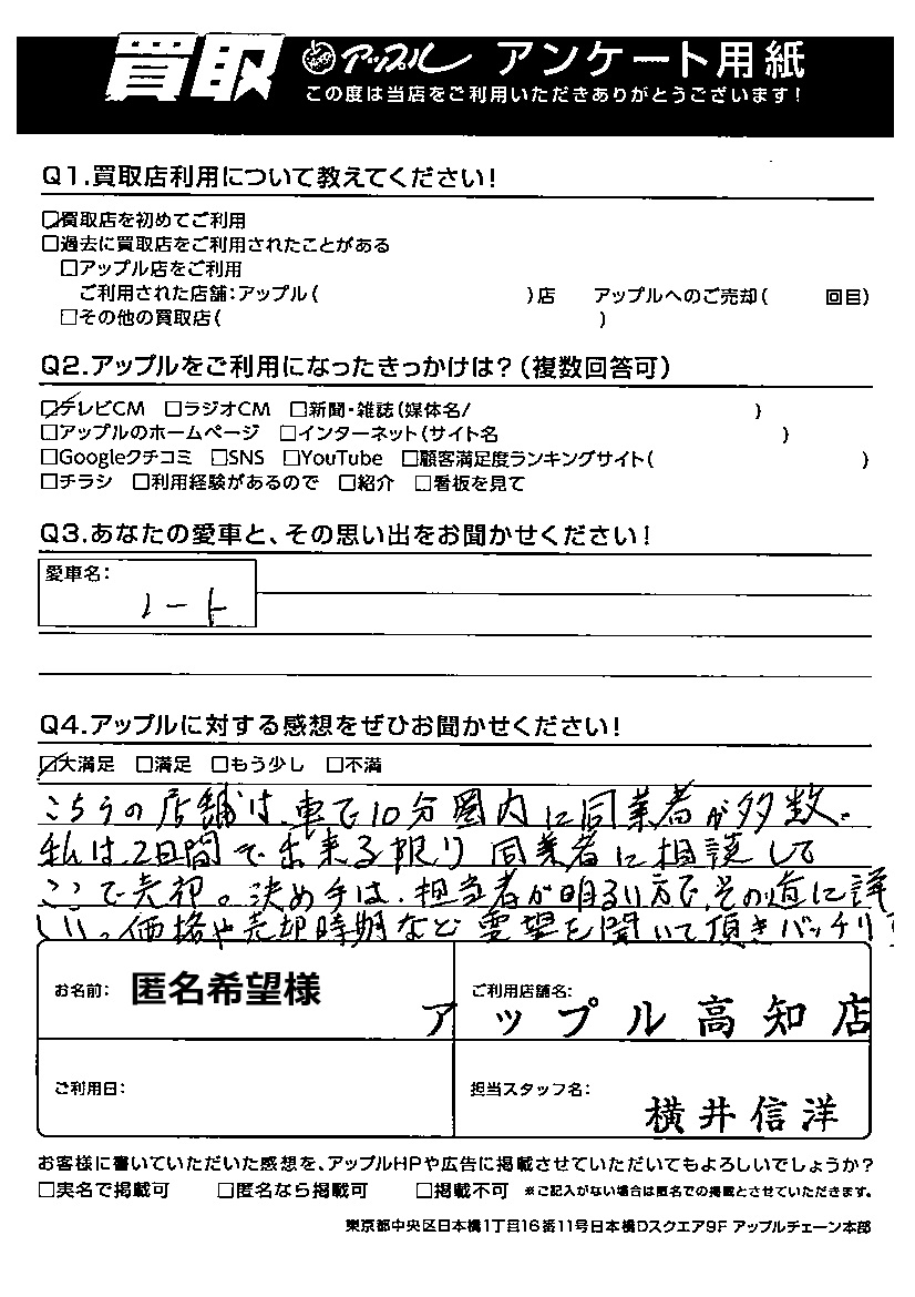 匿名希望様 車名:日産 ノート