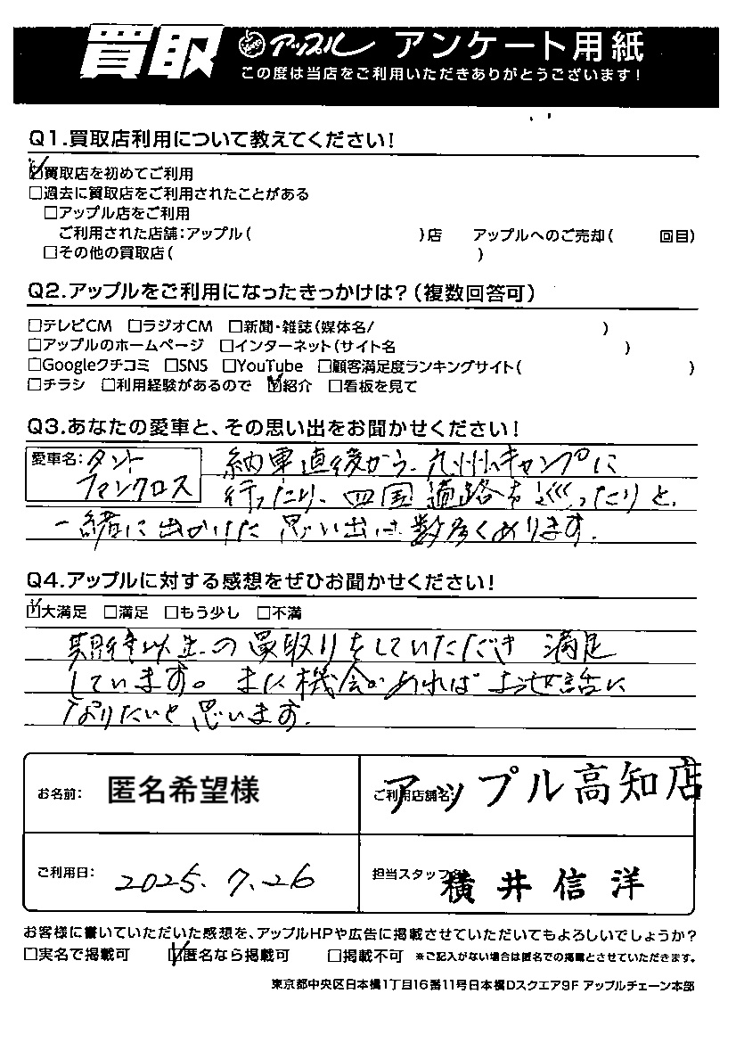 期待以上の買取りをしていただき満足しています。また機会があればお世話になりたいと思います。