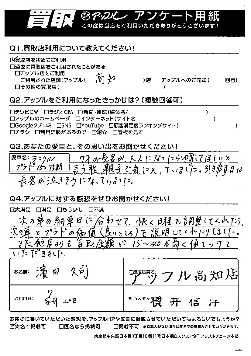 濱田 久司様 車名:トヨタ ランドクルーザープラド