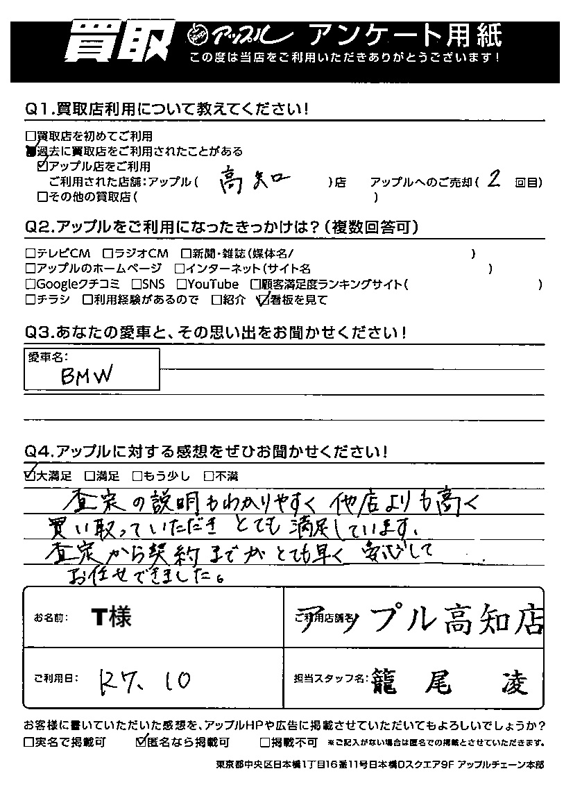 T様 車名:BMW