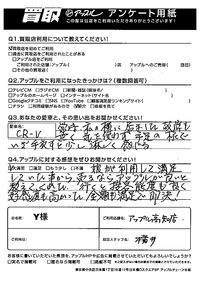 Y様 車名:ホンダ CR-V