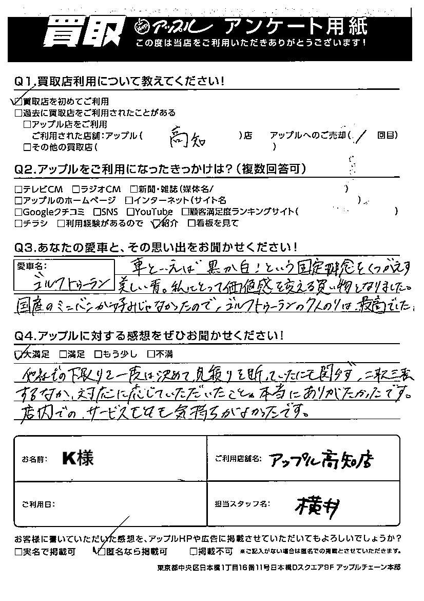 K様 車名:フォルクスワーゲン ゴルフトゥーラン