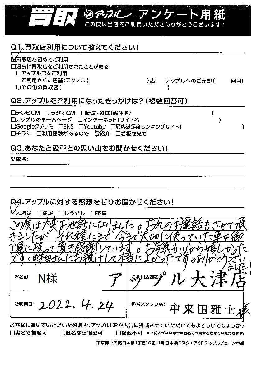それ程にまで今まで大切に使っていた車を御丁寧に扱って頂き感謝しています。