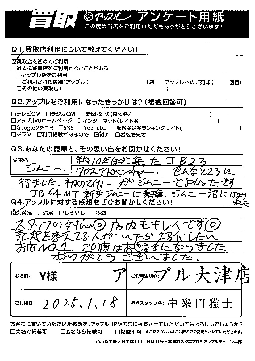 Y様  車名:スズキ ジムニー