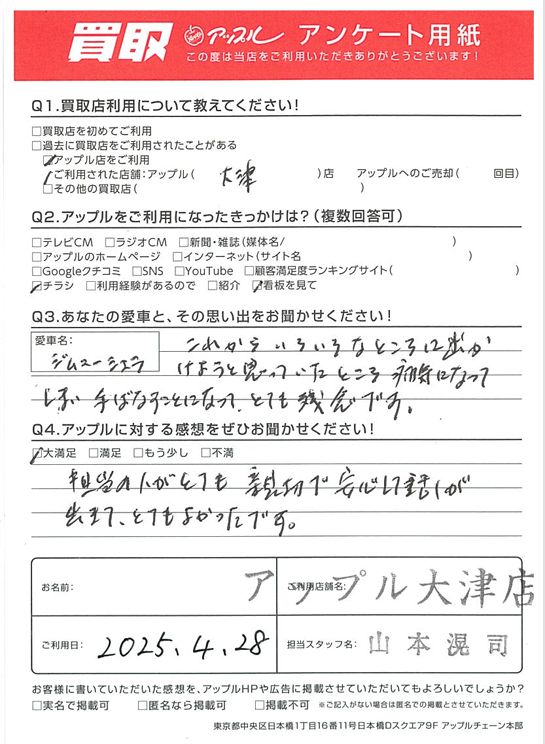 担当の人がとても親切で安心して話しが出きて、とてもよかったです。