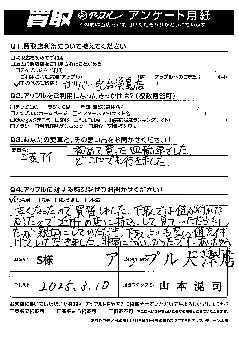 S様 車名:三菱 アイ