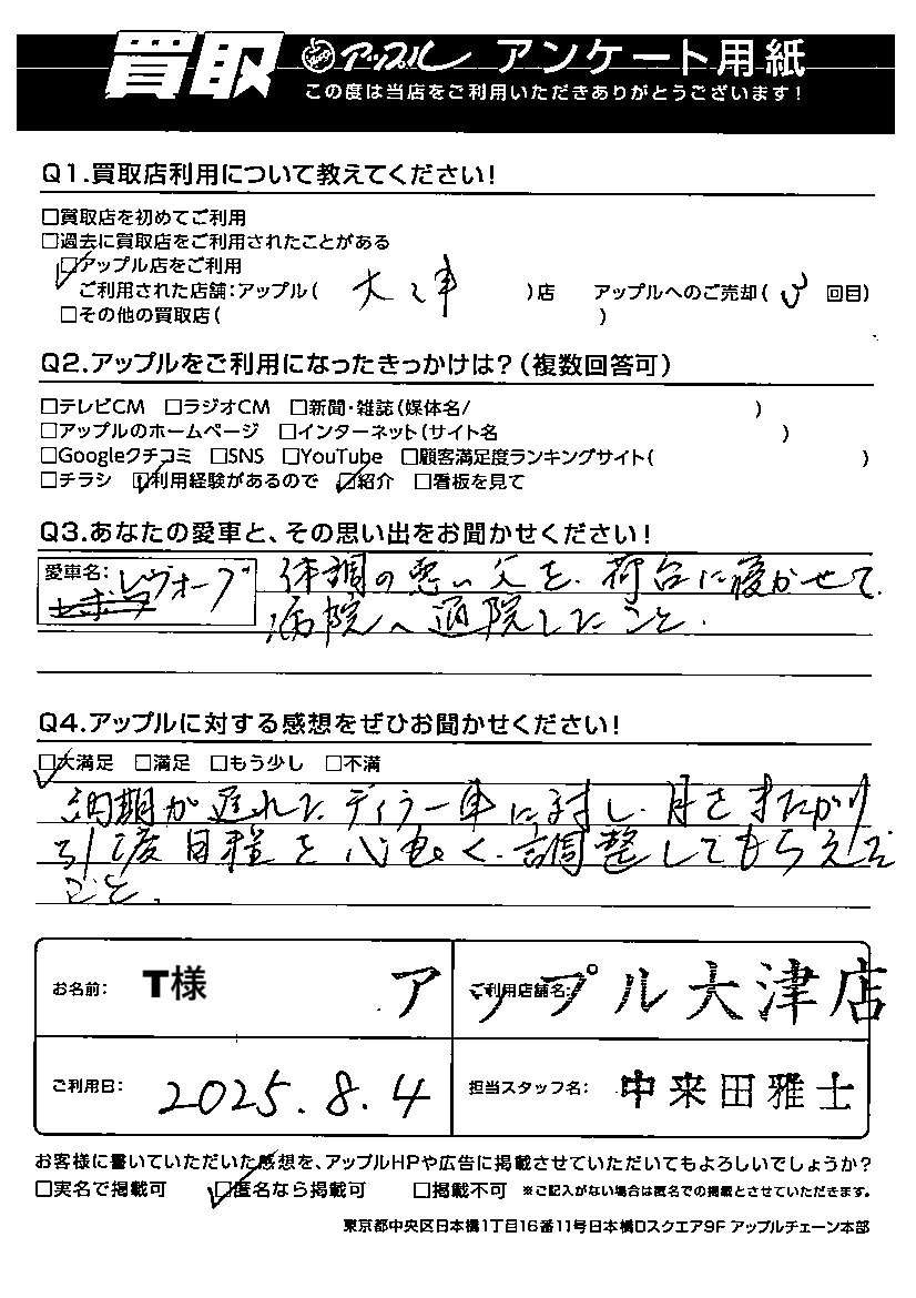 T様 車名:スバル レヴォーグ