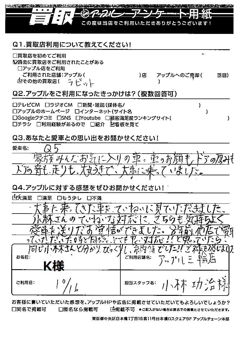 K様 車名:アウディ Q5