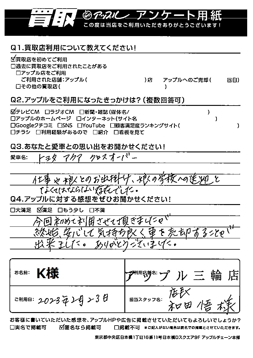 今回初めて利用させて頂きましたが、終始安心して気持ち良く