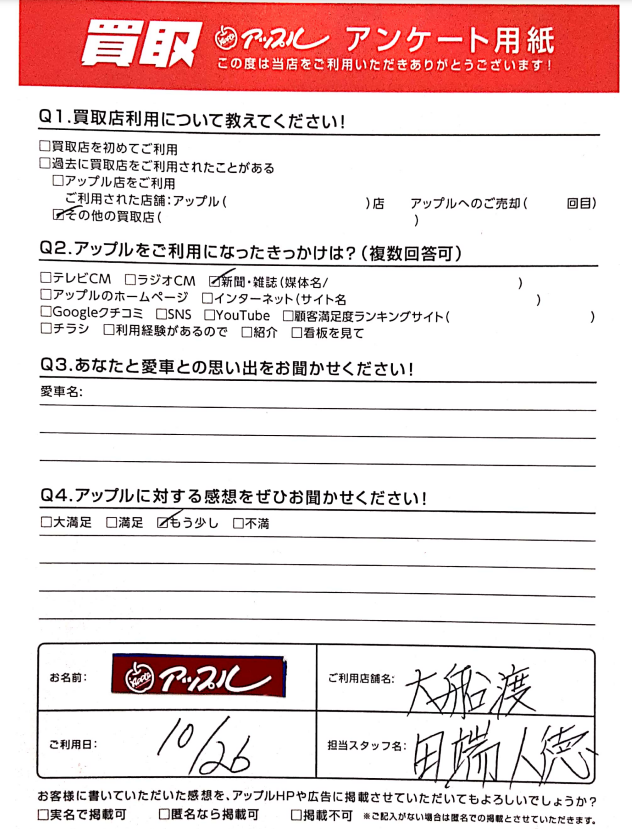 Q1 買取店利用について教えてください!