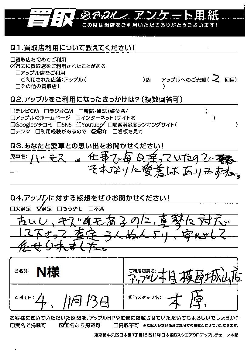 古いし、キズもあるのに真摯に対応して下さって、査定うんぬんより安心して任せられました。
