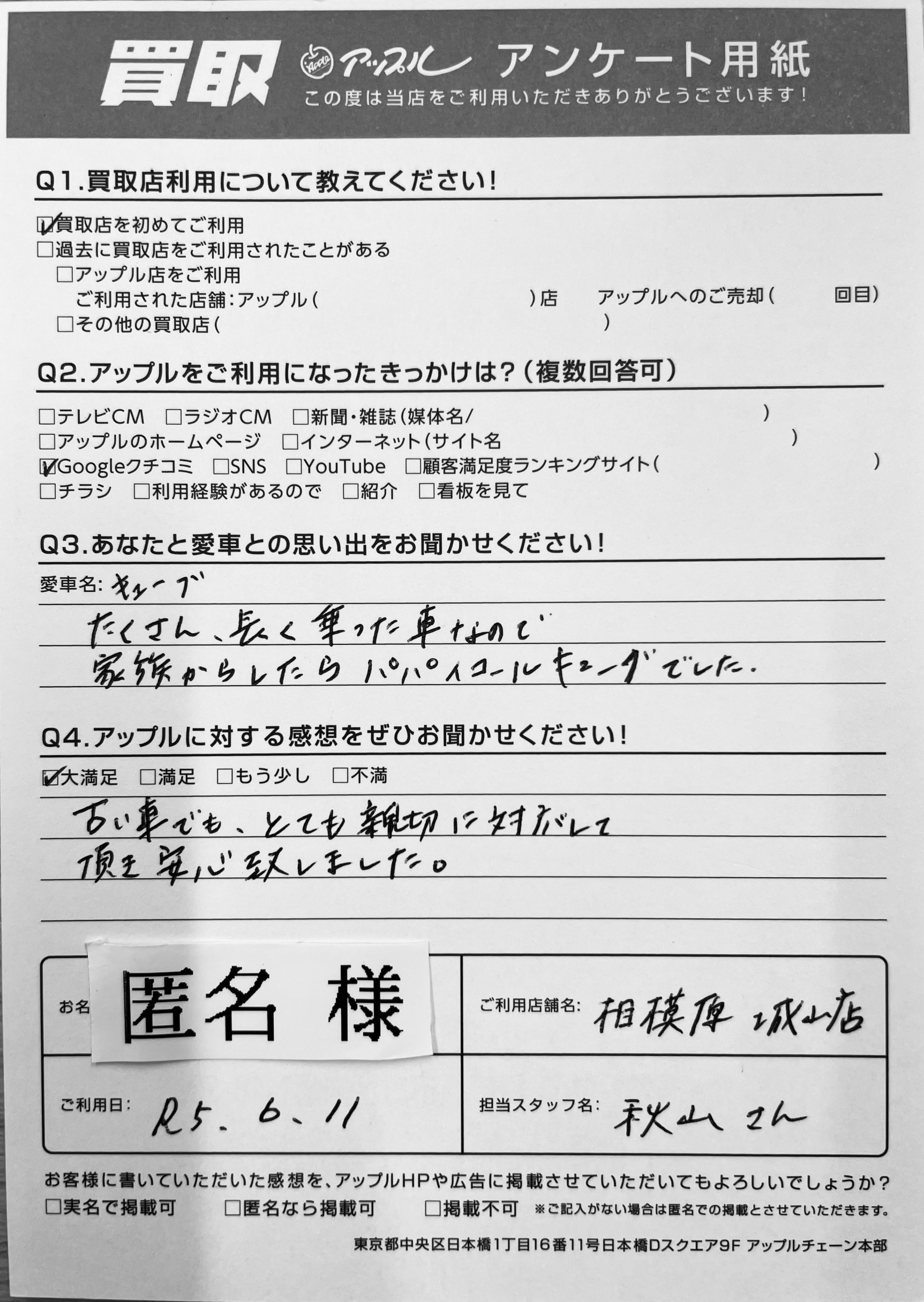 ご利用日:2023/6/11 担当:秋山