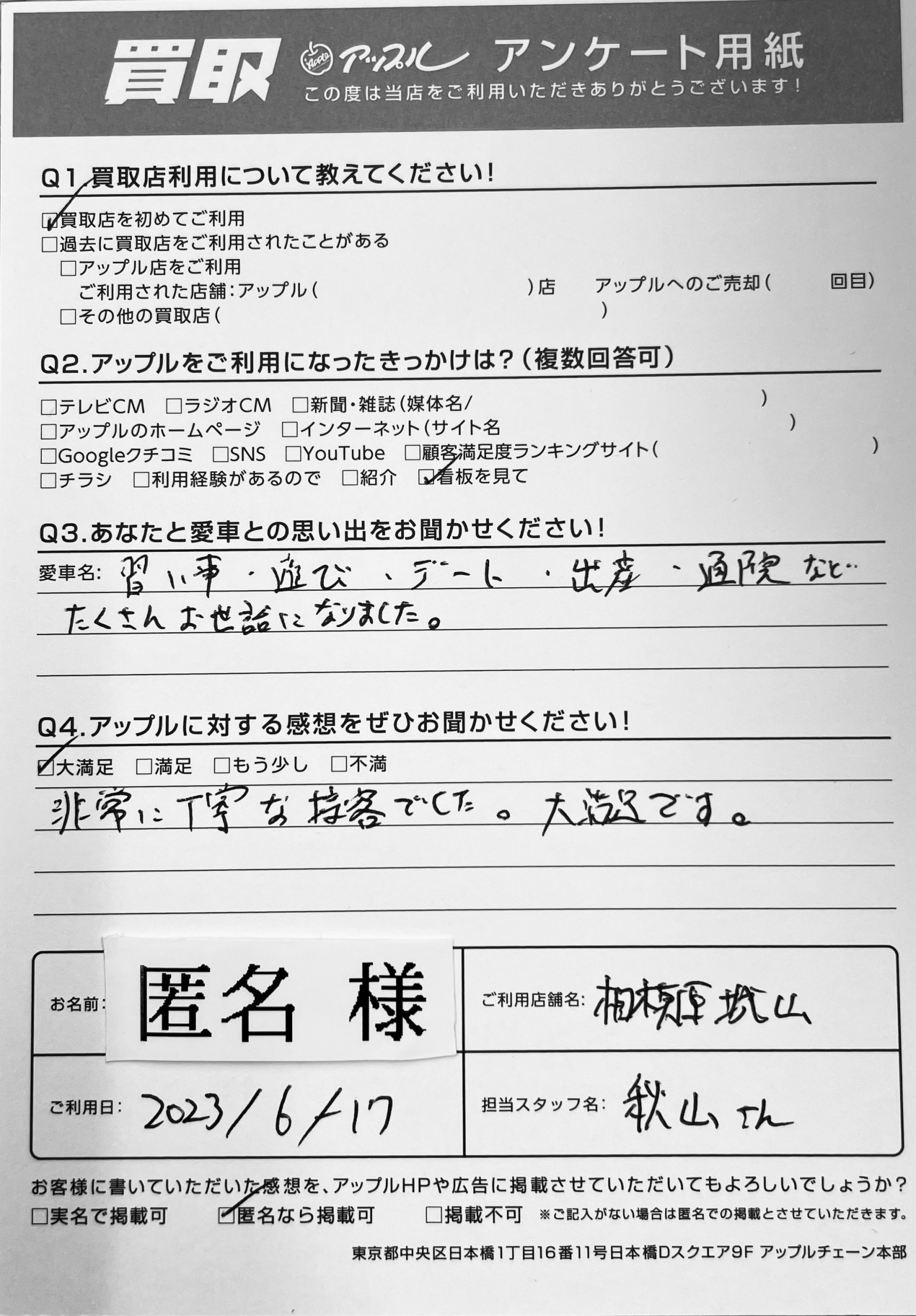 ご利用日:2023/6/17 担当:秋山
