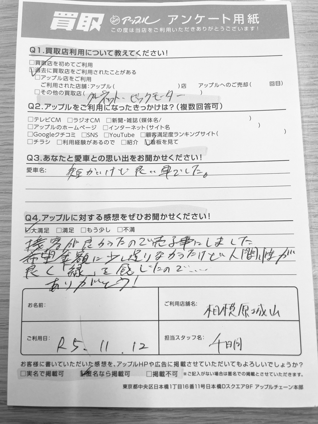 希望金額に少し足りませんでしたが人間性が