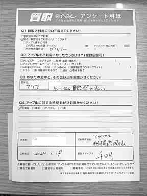 お車のご相談・ 査定だけでもOK! カンタン 入力 30秒 アップルがブランド買取始めました! お電話でも受付中! 受付時間10:00~18:00 0120-782-356 お車のご相談・ 査定だけでもOK! カンタン 入力 30秒 アップルがブランド買取始めました! お電話でも受付中! 受付時間10:00~18:00 0120-782-356 アップルがブランド買取始めました! お電話でも受付中! 受付時間10:00~18:00 0120-782-356 店舗情報 在庫車 スタッフ紹介 ブログ お客様の声 キャンペーン 無料査定 click お客様の声 ご記入日: 2024/01/19 仲川健相模原市 Y様 車名:トヨタ アクア Q3. あなたの愛車と、その思い出をお聞かせください!A. アクア とにかく燃費が良い 前へ 次へ お客様の声一覧を見る