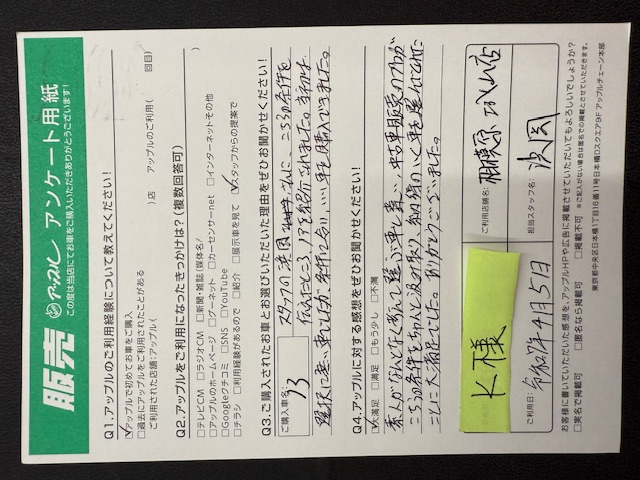 Q4.アップルに対する感想を是非お聞かせください!