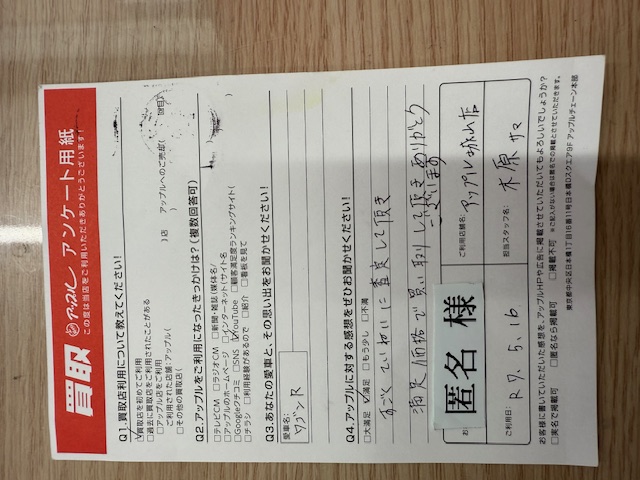 お車のご相談・ 査定だけでもOK! カンタン 入力 30秒 アップルがブランド買取始めました! お電話でも受付中! 受付時間10:00~18:00 0120-782-356 お車のご相談・ 査定だけでもOK! カンタン 入力 30秒 アップルがブランド買取始めました! お電話でも受付中! 受付時間10:00~18:00 0120-782-356 アップルがブランド買取始めました! お電話でも受付中! 受付時間10:00~18:00 0120-782-356 店舗情報 在庫車 スタッフ紹介 ブログ お客様の声 キャンペーン 無料査定 click お客様の声 ご記入日: 2025/05/16 T様 車名:スズキ ワゴンR Q4.アップルに対する感想を是非お聞かせください!すごくていねいに査定して頂き 満足価格で買取りして頂きありがとうございます。 前へ 次へ お客様の声一覧を見る