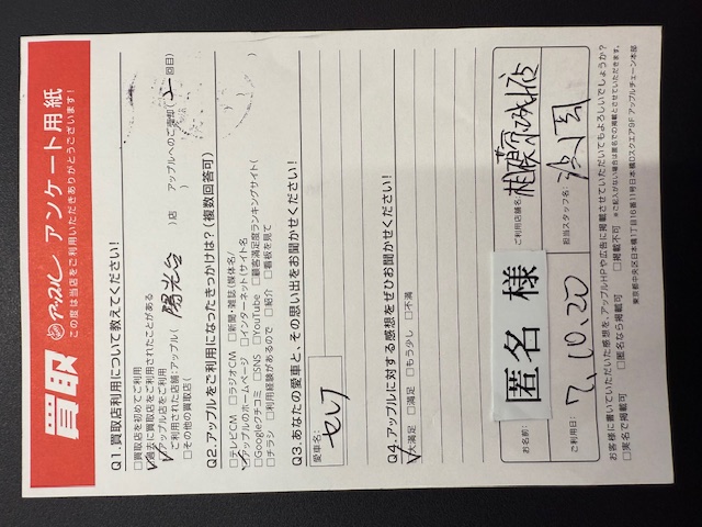 お車のご相談・ 査定だけでもOK! カンタン 入力 30秒 アップルがブランド買取始めました! お電話でも受付中! 受付時間10:00~18:00 0120-782-356 お車のご相談・ 査定だけでもOK! カンタン 入力 30秒 アップルがブランド買取始めました! お電話でも受付中! 受付時間10:00~18:00 0120-782-356 アップルがブランド買取始めました! お電話でも受付中! 受付時間10:00~18:00 0120-782-356 店舗情報 在庫車 スタッフ紹介 ブログ お客様の声 キャンペーン 無料査定 click お客様の声 ご記入日: 2025/10/20 D様 車名:日産 セレナ Q4.アップルに対する感想を是非お聞かせください!大満足 前へ 次へ お客様の声一覧を見る